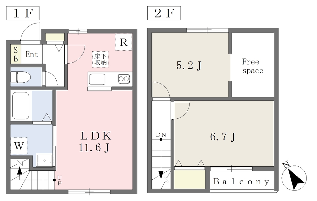 | 設備 | 給湯、BT別、シャワー、追焚、脱衣所、洗面所独立、洗面台、温水洗浄便座、3点給湯、バルコニー、メゾネット(1階-2階)、クッションフロア、収納、下駄箱、床下収納、TVモニタ付ドアホン、ゴミ置場、CATV、24h管理、敷地内ゴミ置き場、対面K、シャッター雨戸、当社管理物件、エアコン、室内洗濯機置場 | ||