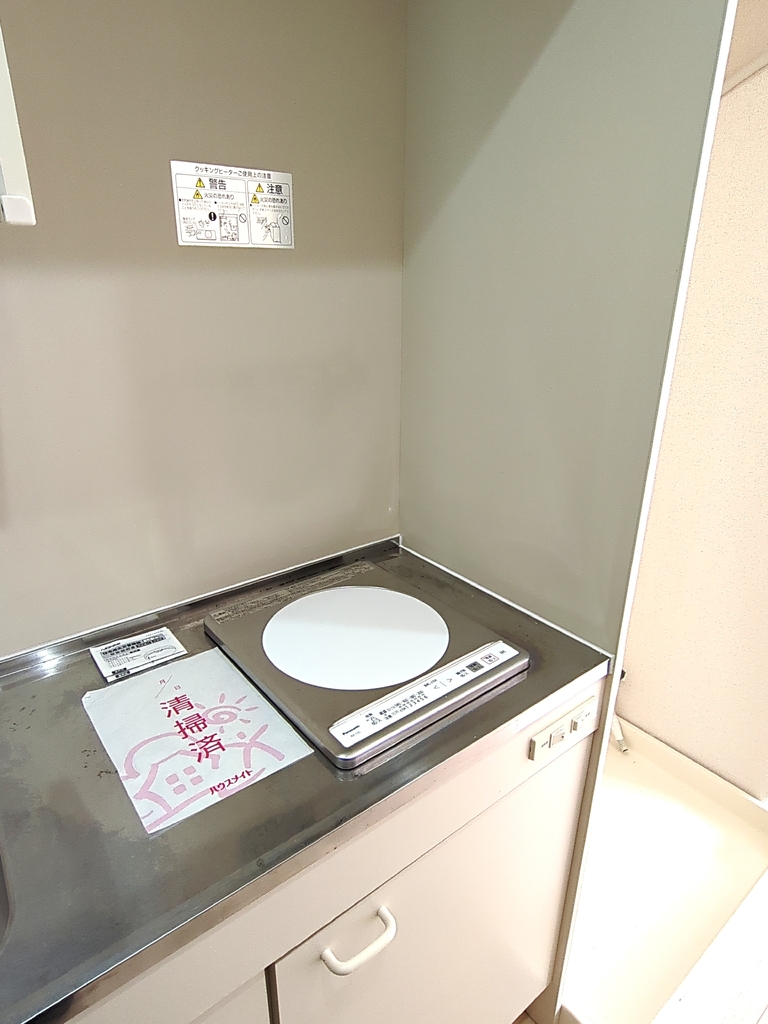 | 設備 | 給湯、BT別、シャワー、洗面台、角部屋、バルコニー、クッションフロア、収納、下駄箱、TVモニタ付ドアホン、ゴミ置場、インターネット接続可(接続環境:光)、地上デジタル、敷地内ゴミ置き場、エアコン、室内洗濯機置場、IHコンロ一口 | ||