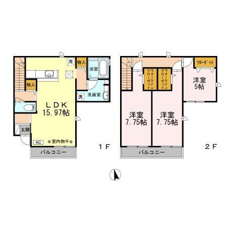 | 建物構造 | 軽量鉄骨 | 所在階/階数 | 1-2階/ 地上2階建て |
