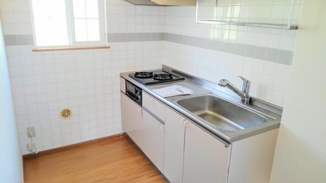 | 設備 | 給湯、BT別、シャワー、洗面所独立、洗面化粧台、最上階、角部屋、バルコニー、エアコン2基、ペアガラス、下駄箱、全室収納、階段下収納、ゴミ置場、駐輪場、BS、CATV、24h管理、防犯カメラ、システムK、グリル、2×4工法、エアコン、室内洗濯機置場、ガスコンロ二口 | ||