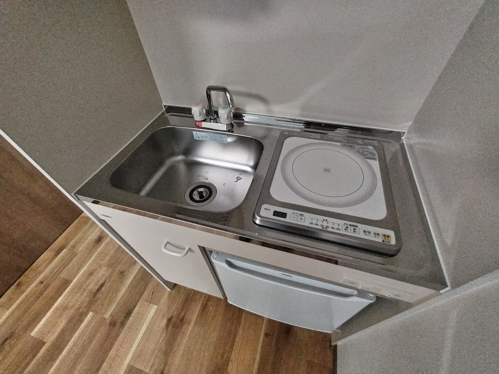| 設備 | 給湯、BT別、シャワー、脱衣所、洗面所独立、シャワー付洗面化粧台、温水洗浄便座、3点給湯、最上階、バルコニー、クッションフロア、照明付、収納、TVモニタ付ドアホン、オートロック、ゴミ置場、駐輪場、インターネット接続可、地上デジタル、敷地内ゴミ置き場、冷蔵庫、インターネット無料、エアコン、室内洗濯機置場、IHコンロ一口 | ||