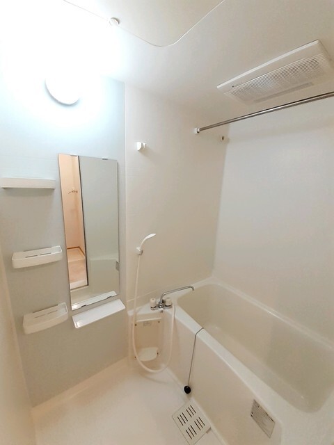| 設備 | 給湯、BT別、シャワー、浴室乾燥機、洗面所独立、シャワー付洗面化粧台、温水洗浄便座、最上階、バルコニー、フローリング、照明付、24時間換気システム、下駄箱、TVモニタ付ドアホン、駐輪場、BS、CATV、24h管理、防犯カメラ、カウンタK、2×4工法、浄水器、人感照明センサー、エアコン、室内洗濯機置場 | ||