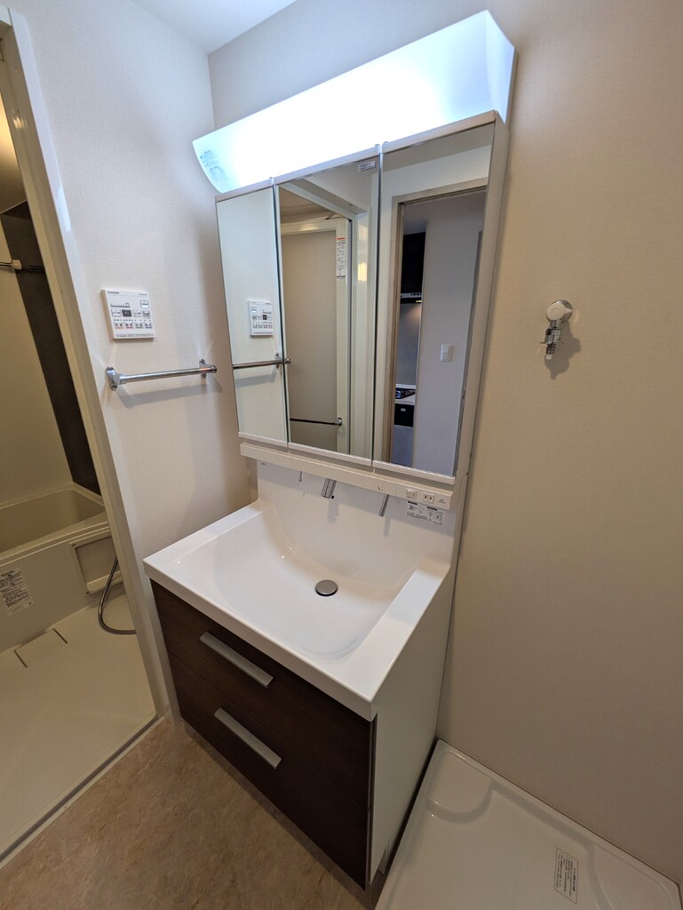 | 設備 | 給湯、BT別、シャワー、追焚、浴室乾燥機、脱衣所、洗面所独立、シャワー付洗面化粧台、温水洗浄便座、3点給湯、角部屋、バルコニー、24時間換気システム、クロゼット、下駄箱、TVモニタ付ドアホン、オートロック、エレベーター、宅配ボックス、ゴミ置場、駐輪場、地上デジタル、24h管理、防犯カメラ、敷地内ゴミ置き場、システムK、グリル、当社管理物件、浴室暖房、エアコン、都市ガス、室内洗濯機置場、ガスコンロ三口設置済み | ||