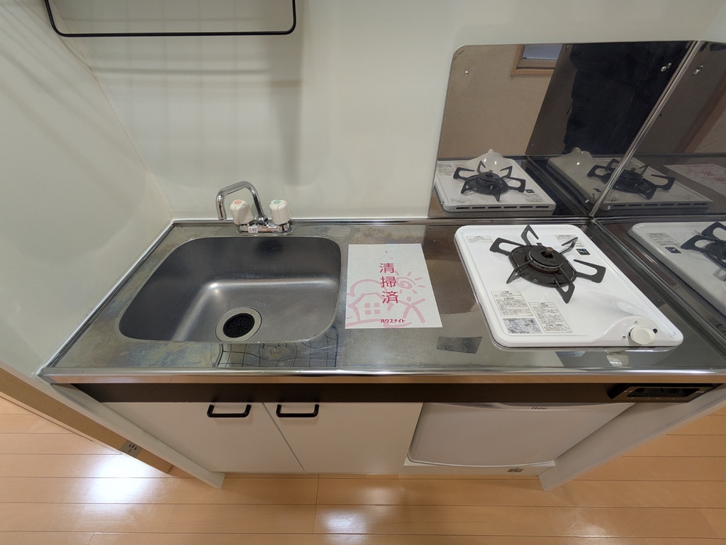 | 設備 | 給湯、BT別、シャワー、洗面台、温水洗浄便座、角部屋、バルコニー、収納、下駄箱、インターホン、オートロック、宅配ボックス、ゴミ置場、駐輪場、インターネット接続可(接続環境:光)、地上デジタル、BS、24h管理、敷地内ゴミ置き場、冷蔵庫、当社管理物件、エアコン、室内洗濯機置場、ガスコンロ一口設置済み | ||
