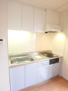 キッチンはガスコンロ2口設置済みのシステムキッチン