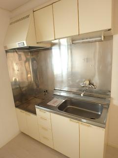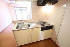キッチンはカウンタータイプでガスコンロ2口付