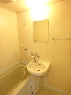 浴室乾燥機付きの浴室と洗浄便座付きのトイレ