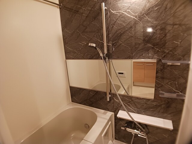 | 設備 | 給湯、BT別、シャワー、追焚、浴室乾燥機、洗面所独立、洗面化粧台、シャワー付洗面化粧台、温水洗浄便座、暖房便座、角部屋、バルコニー、フローリング、照明付、ペアガラス、24時間換気システム、下駄箱、TVモニタ付ドアホン、オートロック、エレベーター、宅配ボックス、ゴミ置場、駐輪場、バイク置場、インターネット接続可、BS、CS、24h管理、防犯カメラ、システムK、外壁タイル、ダブルロックキー、浄水器、インターネット無料、室内物干機、エアコン、都市ガス、室内洗濯機置場、ガスコンロ二口 | ||