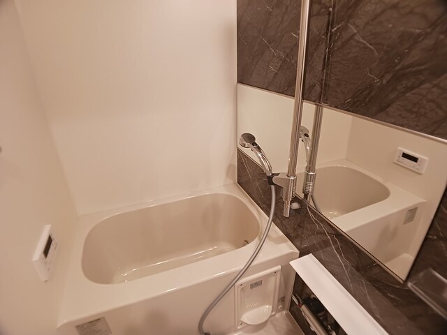 | 設備 | 給湯、BT別、シャワー、追焚、浴室乾燥機、洗面所独立、洗面化粧台、シャワー付洗面化粧台、温水洗浄便座、暖房便座、バルコニー、フローリング、照明付、ペアガラス、24時間換気システム、下駄箱、TVモニタ付ドアホン、オートロック、エレベーター、宅配ボックス、ゴミ置場、駐輪場、バイク置場、インターネット接続可、BS、CS、24h管理、防犯カメラ、システムK、外壁タイル、ダブルロックキー、浄水器、インターネット無料、室内物干機、エアコン、都市ガス、室内洗濯機置場、ガスコンロ二口 | ||