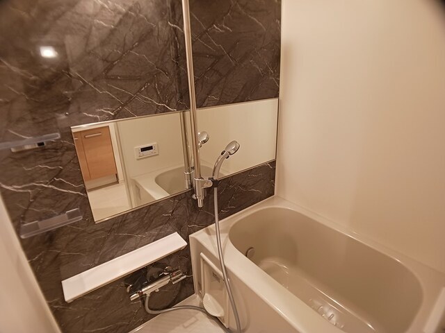 | 設備 | 給湯、BT別、シャワー、追焚、浴室乾燥機、洗面所独立、洗面化粧台、シャワー付洗面化粧台、温水洗浄便座、暖房便座、バルコニー、フローリング、照明付、ペアガラス、24時間換気システム、下駄箱、TVモニタ付ドアホン、オートロック、エレベーター、宅配ボックス、ゴミ置場、駐輪場、バイク置場、インターネット接続可、BS、CS、24h管理、防犯カメラ、システムK、外壁タイル、ダブルロックキー、浄水器、インターネット無料、室内物干機、エアコン、都市ガス、室内洗濯機置場、ガスコンロ二口 | ||