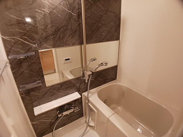 | 設備 | 給湯、BT別、シャワー、追焚、浴室乾燥機、洗面所独立、洗面化粧台、シャワー付洗面化粧台、温水洗浄便座、暖房便座、バルコニー、フローリング、照明付、ペアガラス、24時間換気システム、下駄箱、TVモニタ付ドアホン、オートロック、エレベーター、宅配ボックス、ゴミ置場、駐輪場、バイク置場、インターネット接続可、BS、CS、24h管理、防犯カメラ、システムK、外壁タイル、ダブルロックキー、浄水器、インターネット無料、室内物干機、エアコン、都市ガス、室内洗濯機置場、ガスコンロ二口 | ||
