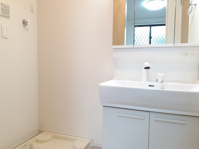 | 設備 | 給湯、BT別、シャワー、追焚、浴室乾燥機、洗面所独立、シャワー付洗面化粧台、温水洗浄便座、角部屋、サンルーム、フローリング、照明付、ペアガラス、24時間換気システム、下駄箱、床下収納、物置、TVモニタ付ドアホン、宅配ボックス、ゴミ置場、駐輪場、インターネット接続可、BS、24h管理、防犯カメラ、システムK、2×4工法、オートバス、浄水器、シャッター雨戸、人感照明センサー、室内物干機、エアコン、都市ガス、室内洗濯機置場 | ||