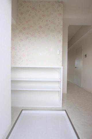 玄関入ってすぐの壁紙は大変おしゃれになっています
