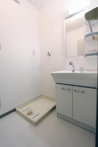 独立洗面化粧台とその横のスペースが室内洗濯機置場です