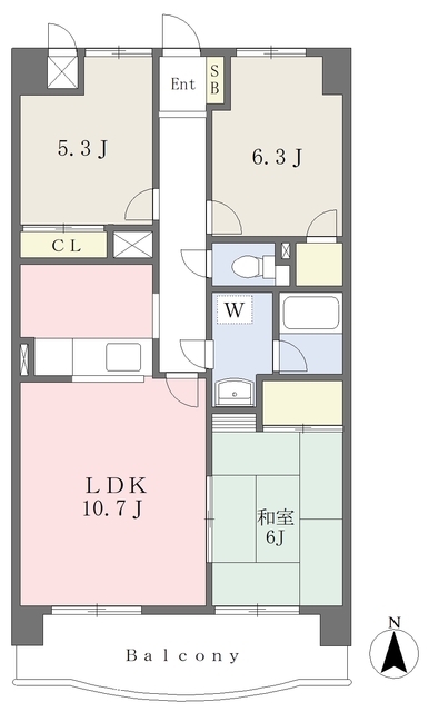 3LDKの間取りでご家族の多い方でも使いやすい間取りです