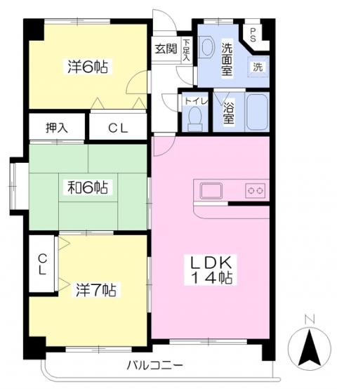 洋室が北側6帖、南側が7帖、和室が6帖になります。