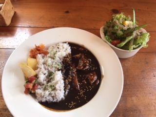 糸島のカフェで食べた黒カレー