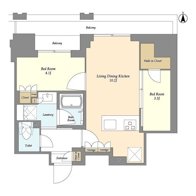 2LDK/43.49m2 |