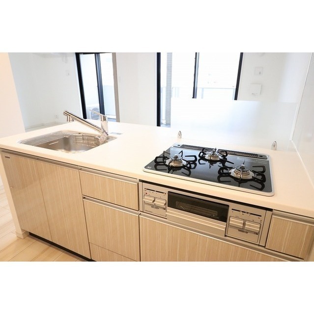 浴室乾燥機、洗面所独立、温水洗浄便座、フローリング、エアコン2基、ピクチャーレール、TVモニタ付ドアホン、オートロック、エレベーター、宅配ボックス、駐輪場、バイク置場、BS、CS、防犯カメラ、システムK、グリル、シリンダーキー(ディンプル)、浄水器、24時間ゴミ出し可、エアコン |